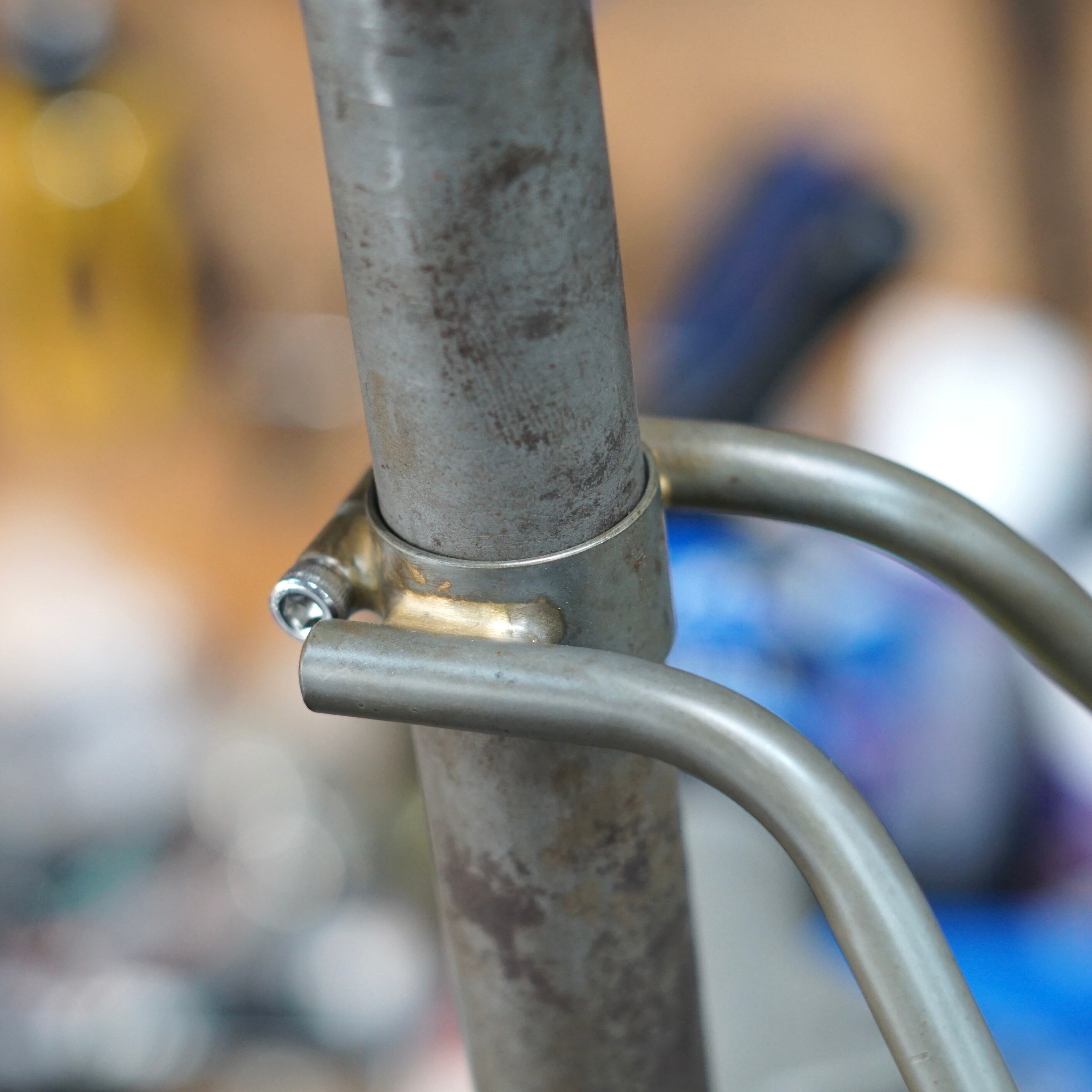 取り付けはフロントフォークのコラムにスペーサー代わりに通して装着します。